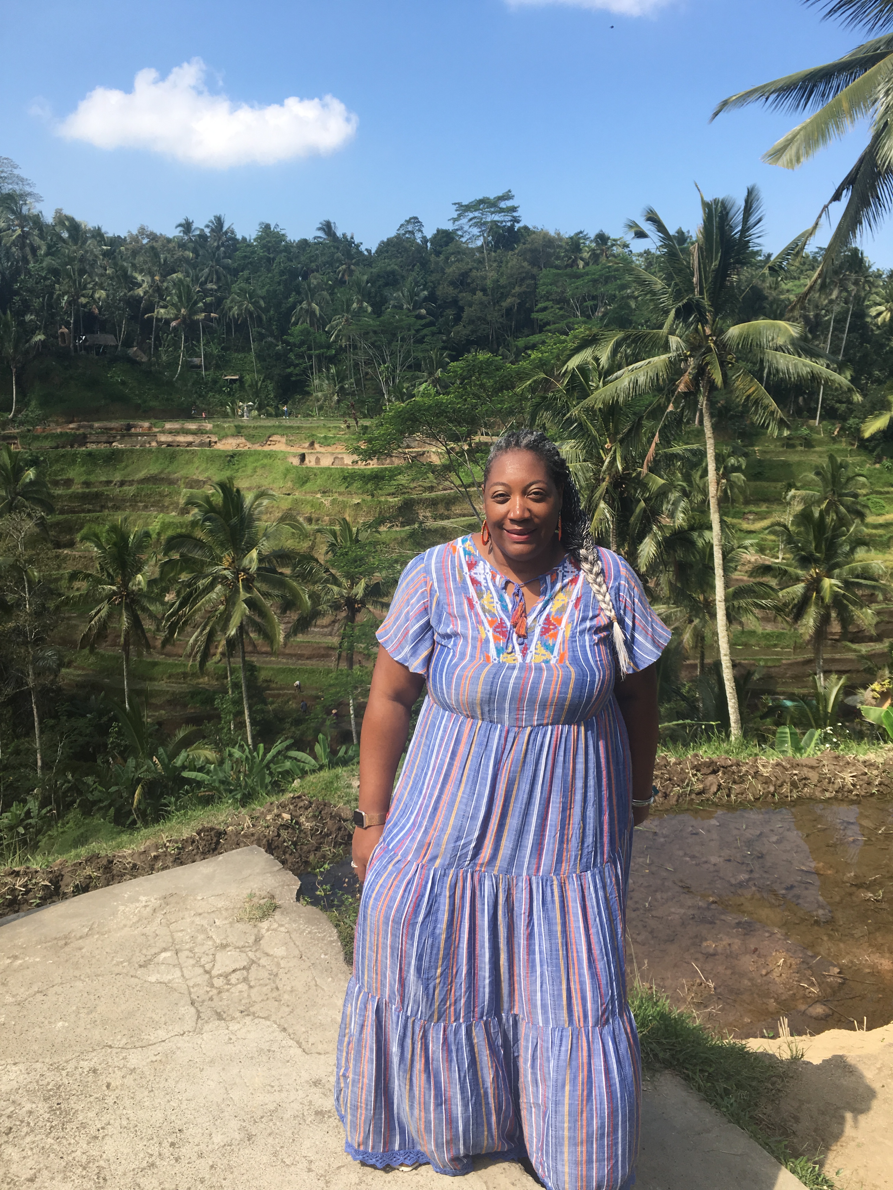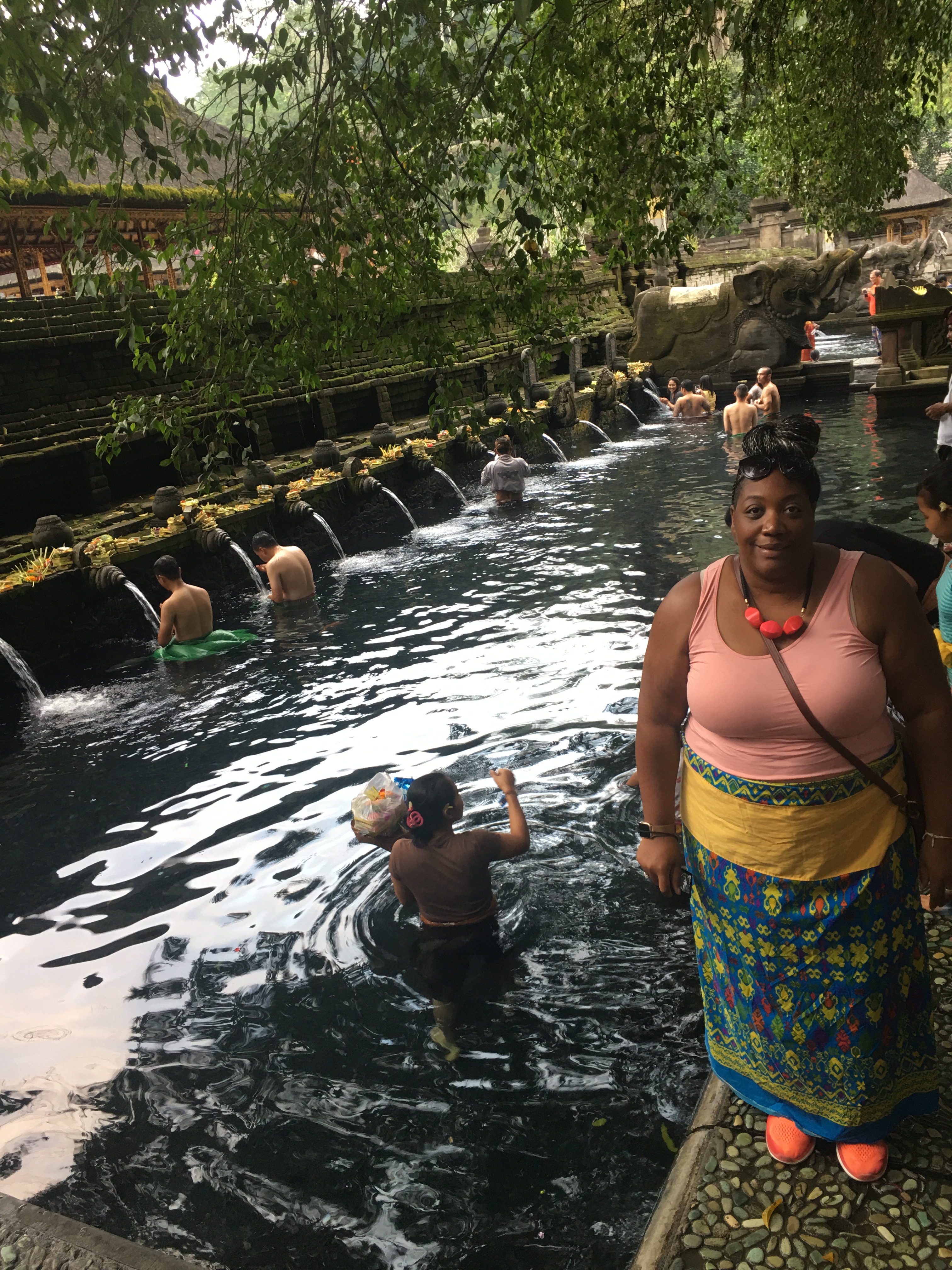 Putu picked me up from the docks and we headed out. He warned me that the road was bumpy. I told him about my trip to Kenya on that bumpy road for hours. No need to worry, I had training. These bumps were minor. But hey, to see beautiful sites you might have to endure something uncomfortable. We had good conversation. He explained that his English was not good, so you know the teacher in me gave him some ELA strategies. He asked about my hair and was very enthusiastic. I showed home some pictures from before. He didn’t like that I cut my locs. He said I should grow them back.