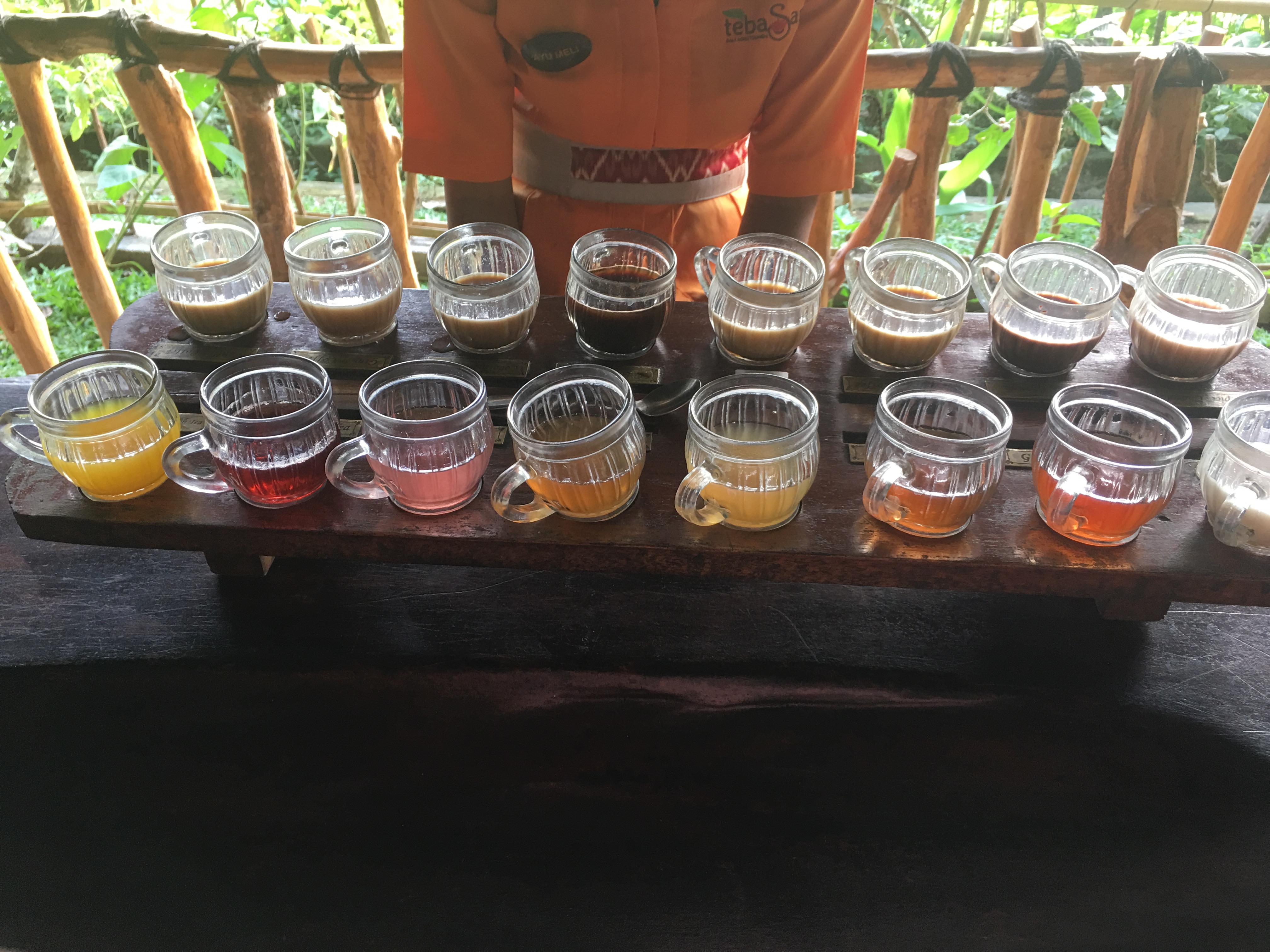 What a busy day I have had. We arrived in Ubud and went to the Sacred Monkey Forest. It’s a nice attraction you can tell it’s there home and we are just guests. They pay no attention to the people. Also, there is a cremation area within the forest. Families bring the deceased to have them cremated and perform rituals. I wasn’t able to find that meme-able monkey. However, a breastfeeding monkey might make you cry. Afterwards I stopped for lunch at a local spot Agung recommended. Then I went coffee and tea tasting. There was a very nice variety, but I feel in love with the avocado coffee. It already has a creamy consistency and is sweetened. I purchased a bag to bring home. Just a heads up… I will never go tea/coffee tasting at a place that makes coffee from Luwak’s. I am not per se an animal rights activist, but that’s just not right and I found out afterwards. We finally made our way to the water temple. I had every intention of getting in, but the water was just so cold. I finally made it to Artotel. Such a cute place. It feels very green and modern. I settled in my spacious room and I took a walk out to town and grabbed dinner and drinks for the room.