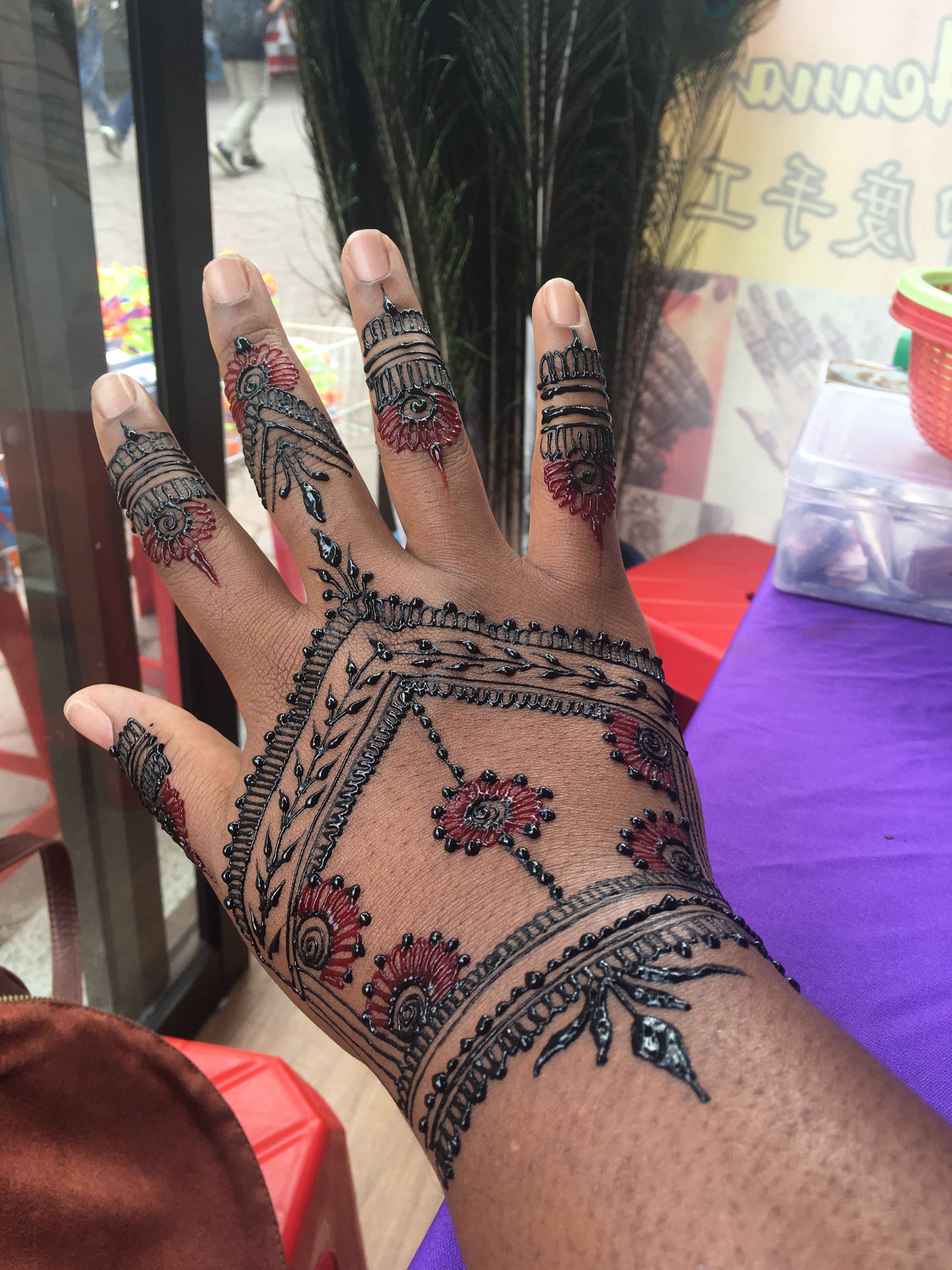 I slept in today, because it’s vacation and I’ve found that I don’t like to pack in too much on the end of a trip. I headed up to the roof for an iced latte and some lunch before heading out to the Batu Caves. It seems to rain everyday around noon. Hopefully it will pass by 2 so I can catch the bus. I purchased an umbrella. No need to be mad when I get wet and it could have been avoided. The brochure says it’s 11 km out of the city. However, it was nice to take in sites. It wasn’t a really bad ride. If there were no traffic it would be much faster. The Batu Caves is home to Kuala Lumpur’s most frequented tourist attractions. It is a limestone hill comprising three major caves and a number of smaller ones… And gangsta monkey’s. I saw a dude sit in the ground and the monkey came up to get a snack. First of all, I would never sit on the ground there. Unless you plan on climbing up the steps, there’s nothing here to really do. There are plenty of vendors and henna art. After getting my photos, I went ahead and got a henna design. In the past when I’ve tried it, it didn’t take. This must be really good! It turned out great. We headed back to the city for drop off.