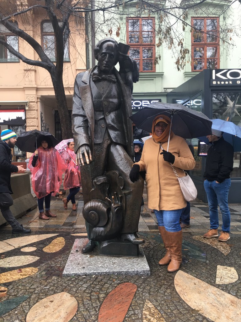 So I found this cool app and I am not sure if I mentioned if before, but Free Tours is the business. Don’t ever get on another Hop on Hop off tour if the city you are visiting is listed on the app. It was a rainy Monday and part of me wanted to stay inside, but I also wanted to explore the city. So I soldiered on and went on the tour…. in the rain. Along the way we visited Old Town, City Walls, Cathedral, various city statues and discussed how communism and monarchy impacted the country. The highlight was ending at the Bratislava Castle. From the castle you are given a panoramic view of the city. You can see the Danube River for as far as the eye can see. The UFO of Bratislava is right across the river. The cathedral is right in front of the castle area. The neighborhood leading to the the castle is called the Bermuda Triangle. People are known for bar hoping, drinking too much and getting lost. I found Patrick, our tour guide to be very knowledgable about not only Bratislava, but the surrounding countries and their impact.