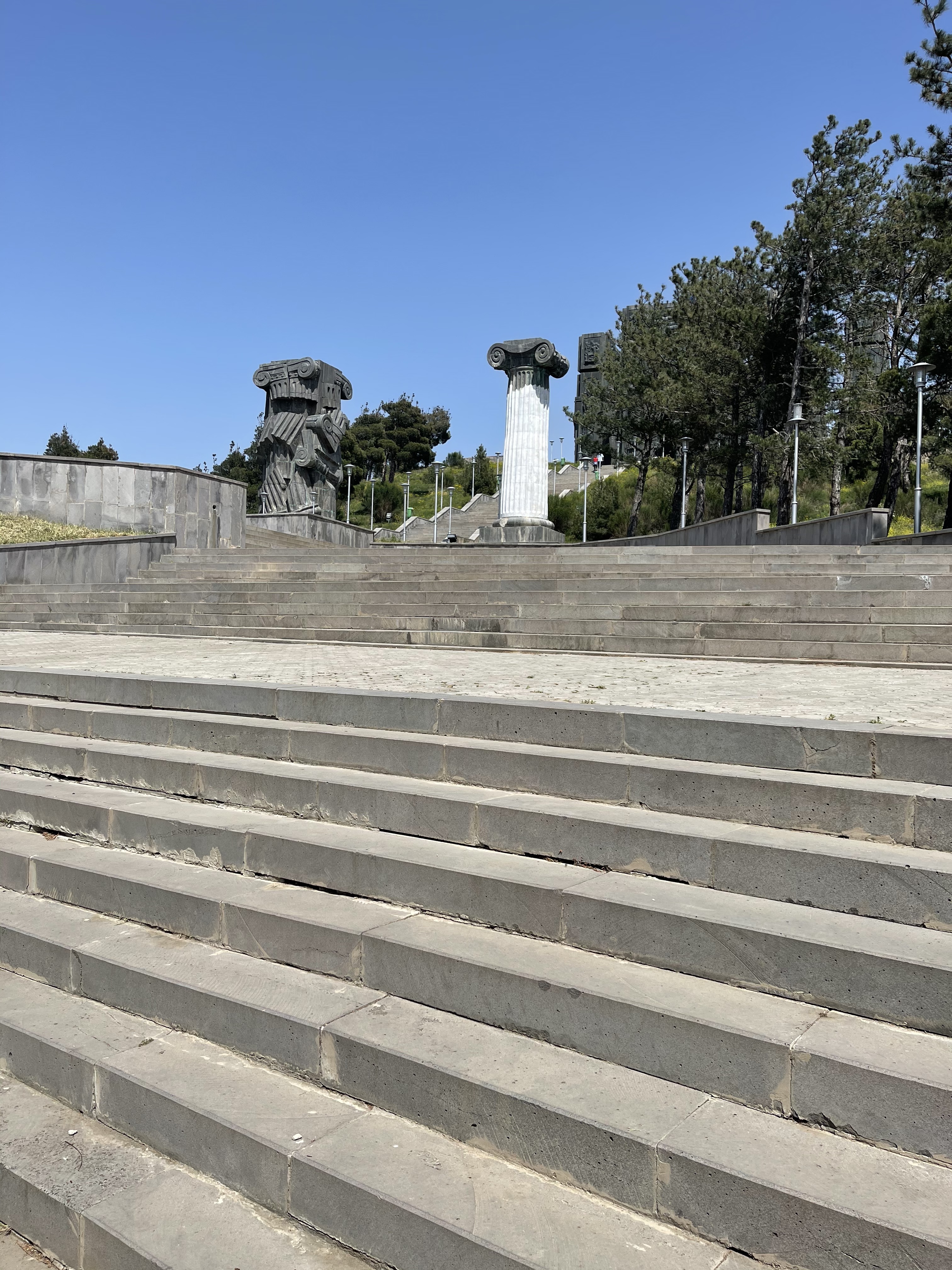 It’s a fairly new monument built in 1985 that tells the history of Georgia, primarily focused on kings and queens at the top of the 30 or so meter pillars. On the bottom is stories about the life of Christ. It reminds me of The Acropolis in Greece. You climb up to the top and you are surrounded by tall concrete statues. Definitely worth the visit. It is also situated near the Tbilisi Sea.
