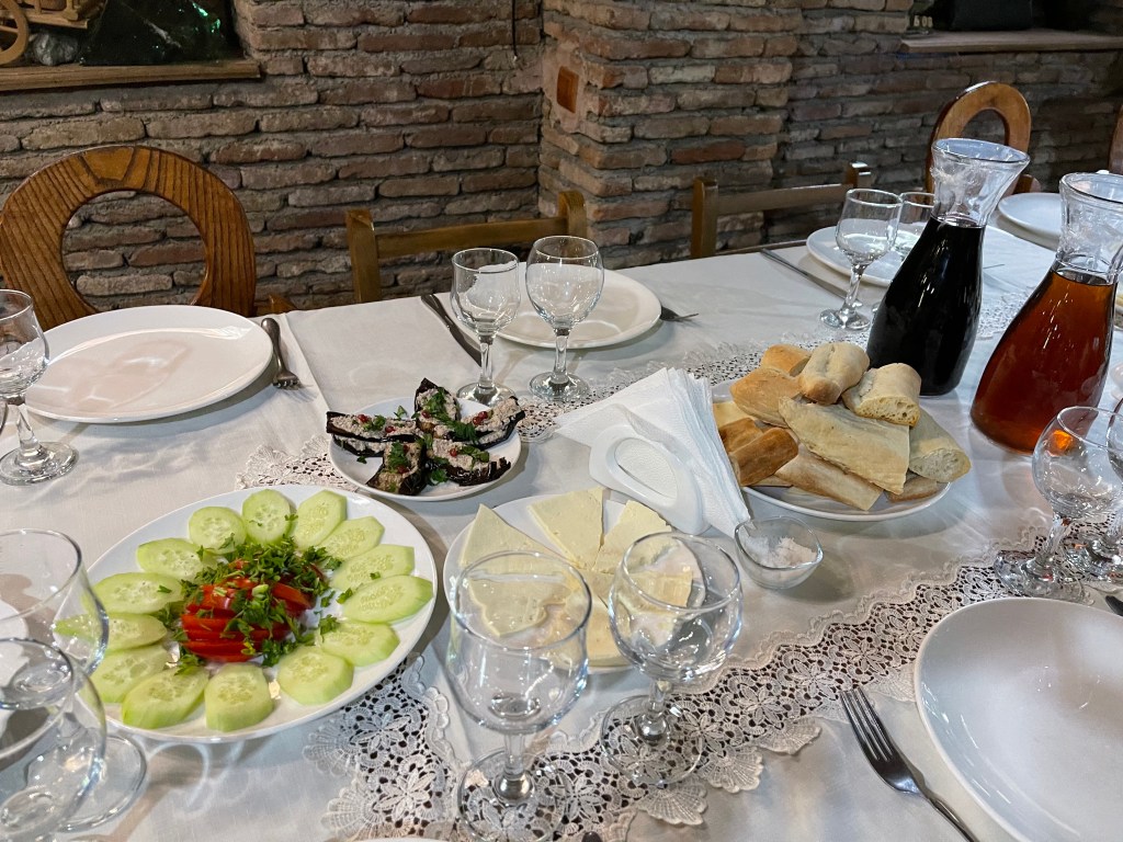 Afterwards, we headed to our lunch destination which is a family owned wine museum and restaurant. The food was delicious and on time to pick up my mood. It consisted of cucumber and tomato, cheese, bread, Katchapuri, potatoes, zucchini and eggplant, eggplant and walnut and an assortment of meats- pork, beef and chicken. During the meal we were graced by some young dancers showcasing their traditional Georgian skills. It was delightful. The meal was 40 Lari ; 12 USD.