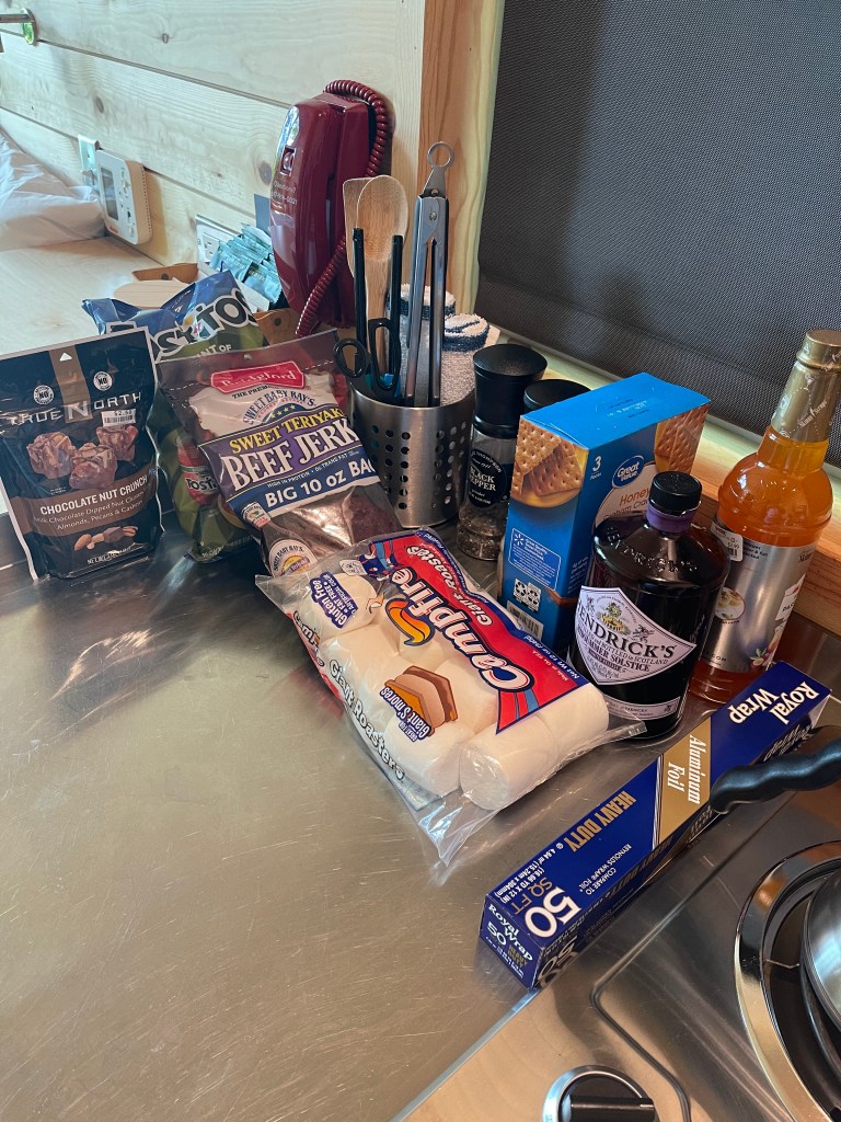 You can also find provisions for purchase such as logs, fire starters, tea and coffee. In the kitchen there are individual packets of olive oil, salt, pepper and plenty of utensils. So basically bring yourself, some of your favorite snacks/ food and enjoy your time.