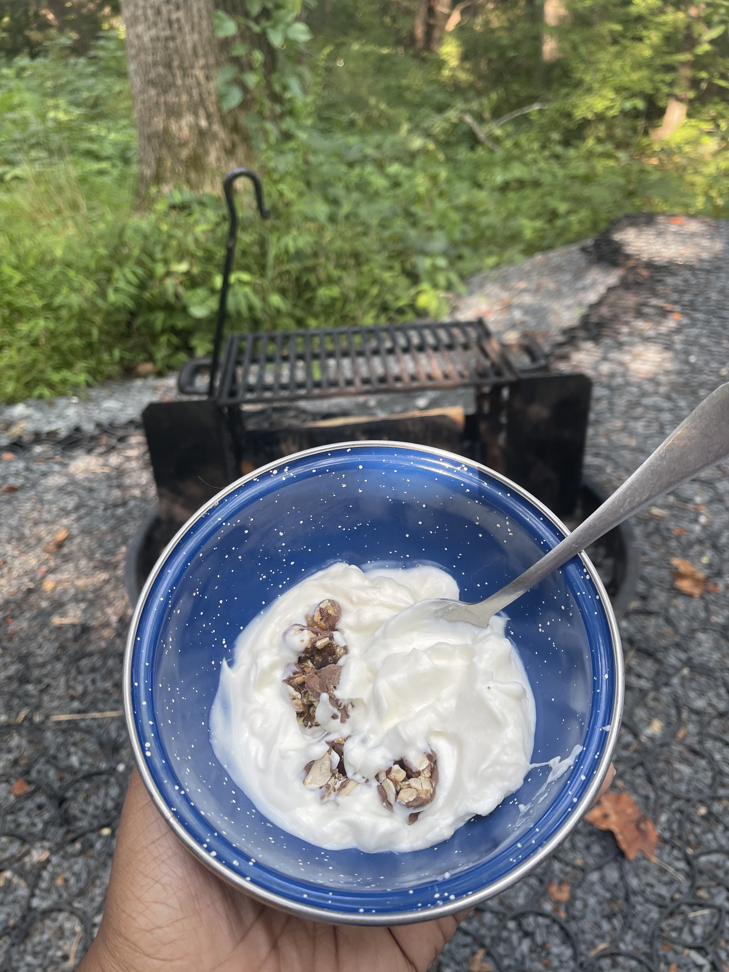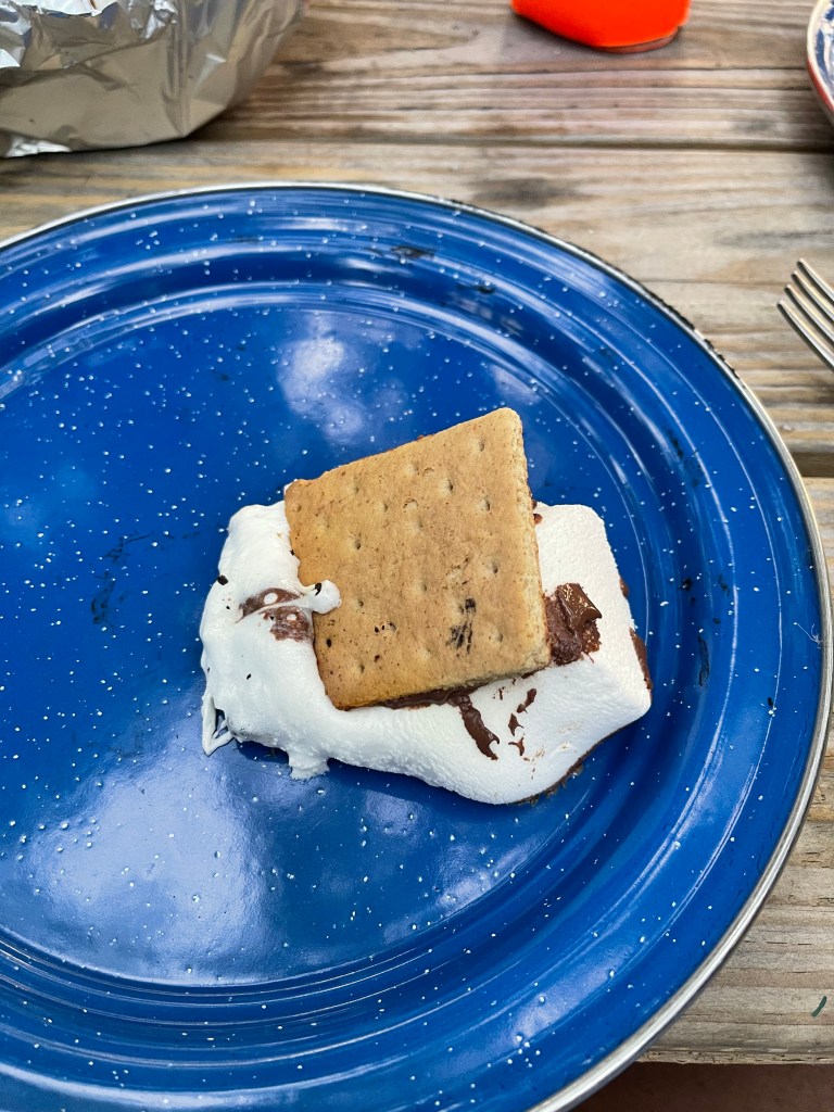 Once I was able to get everything sorted I decided to try and start the fire. That was mess. It’s not something that I have done before, so it probably took more fire starters than needed. After I was able to get it going, I placed my marinated kabobs wrapped in aluminum foil over the fire. I let them cook for just over 30 minutes. Prior to leaving home I made a cucumber salad as my side. It turned out great! It was a light meal followed by burnt S’mores. I spent the rest of the evening by the fireside just relaxing. This is the type of place you come to think about life, adjust, heal, etc. You have neighbors, but it’s not intrusive.
